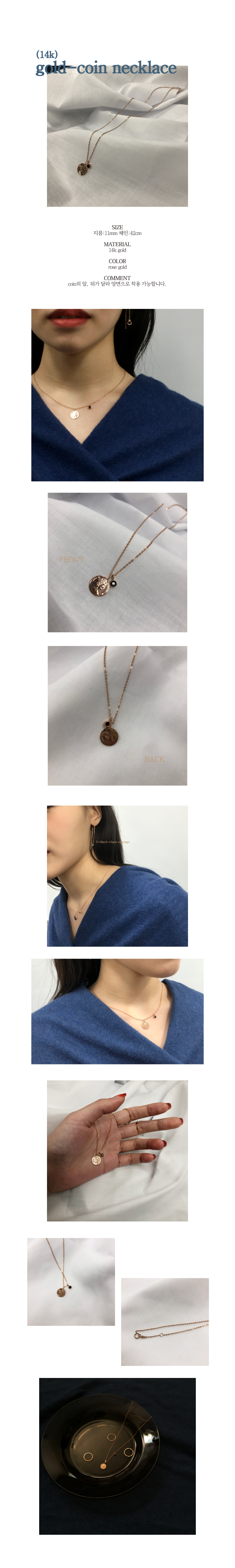 [gold 14k+Onyx] gold-coin necklace