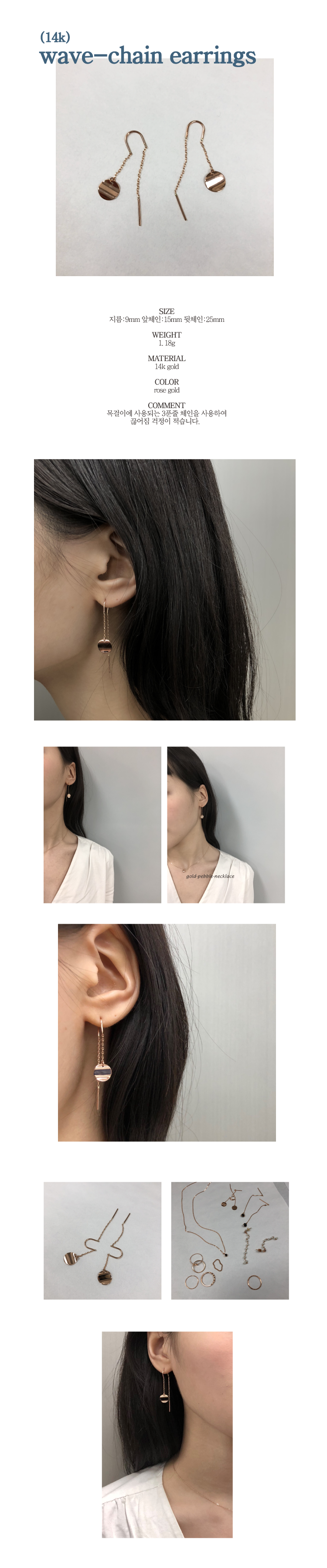 [gold 14k] wave-chain earrings